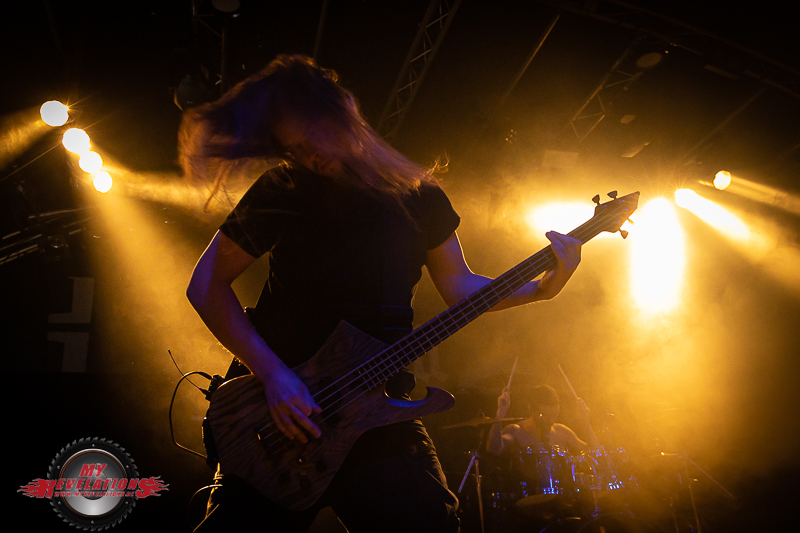 Der Changeover wird zügig vollzogen, denn auch die Umbaupausen sind heute minutiös durchgetaktet. Wie auch GHOSTS OF ATLANTIS dürfen IGNEA nur die halbe Bühne nutzen, da bereits das FEAR FACTORY Schlagzeug aufgebaut auf der Bühne steht. Die Markthalle füllt sich so langsam als sie vier Ukrainer die Stage betreten. Wie bereits oben erwähnt ist Frontfrau Helle nicht am Start, dies wird auch von Gitarrist Dmitry an das Publikum übermittelt. Die Enttäuschung ist zwar groß, auf der anderen Seite muss man den Musikern irgendwo auch Respekt zollen, dass sie trotzdem auftreten und eben einen instrumentellen Set spielen.
