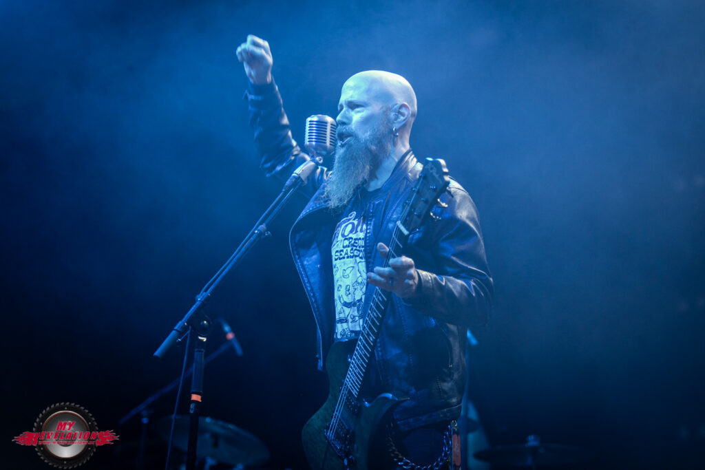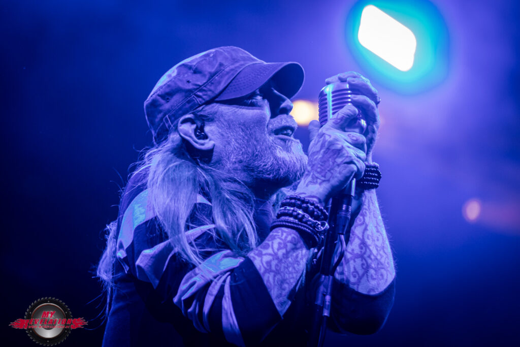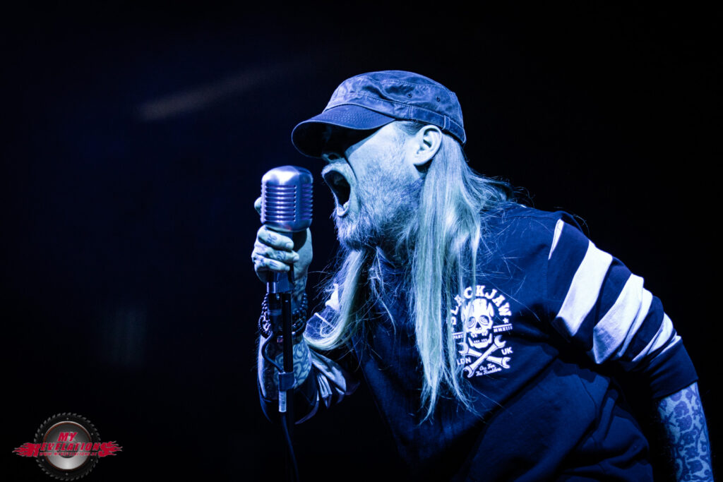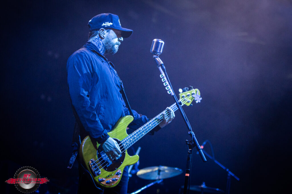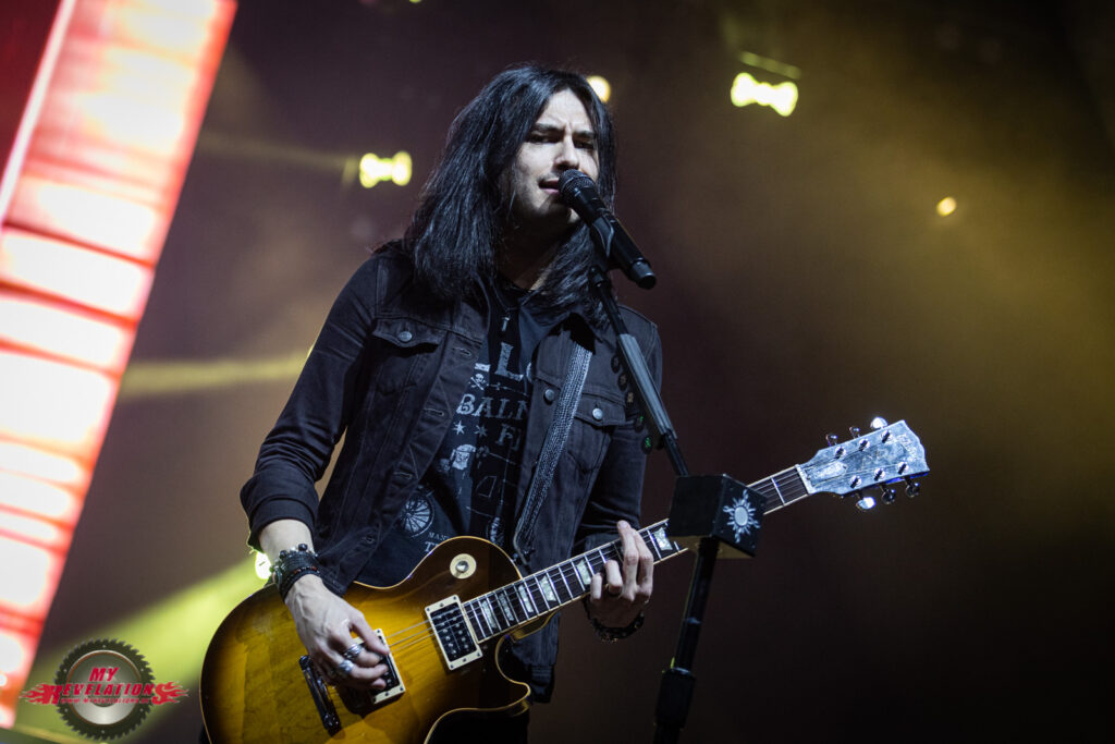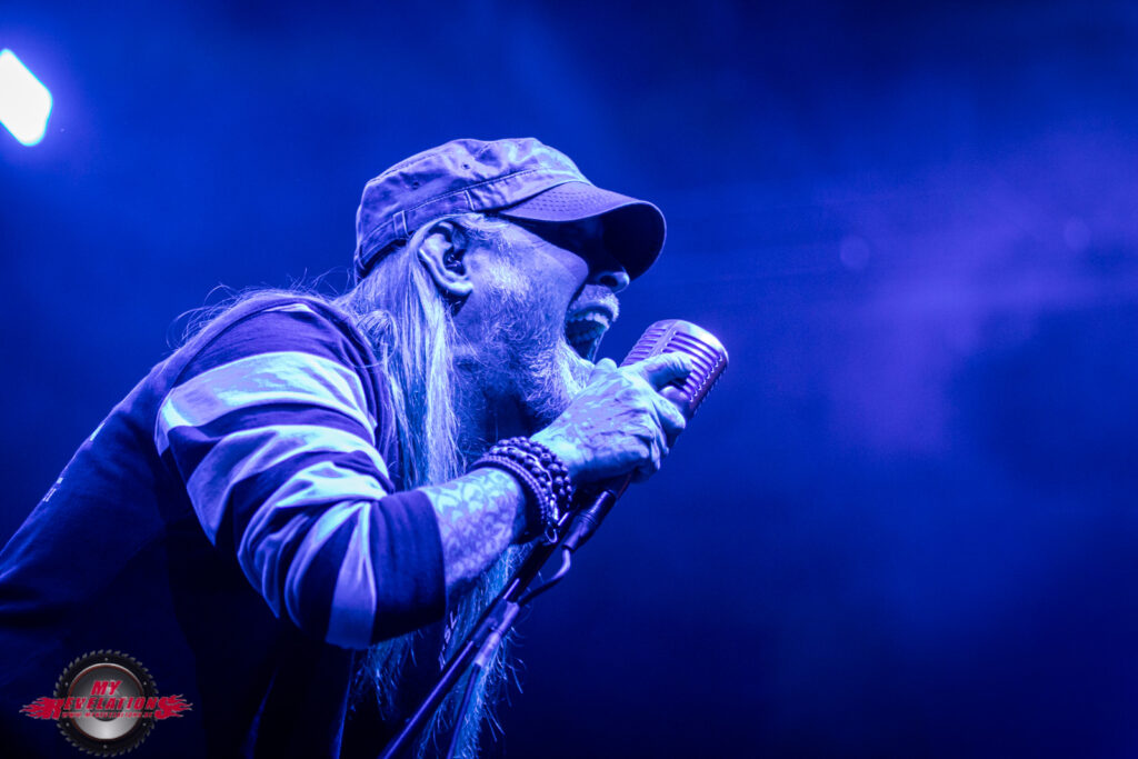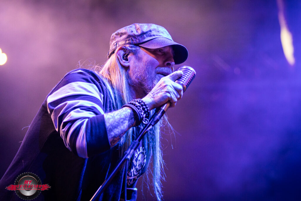 Das nachfolgende „Whatever“ beendet dann den offiziellen Teil, und mithilfe der Video Leinwand und eines Roadies wird dann hinter Bühne festgelegt, dass es drei Zugaben gibt. Von denen bleibt „Under Your Scars“ als Gänsehautmoment hängen, denn der GODSMACK Frontmann leitet das Ganze mit sehr feinfühligen Worten ein während ein Klavier auf die Bühne gebracht wird und auf der Leinwand Kontaktnummern von Hilfsorganisationen stehen. Während des Songs erinnert er Menschen die nicht mehr unter uns weilen, z.B. Amy Winehouse oder Chester Bennington. Hier habe ich tatsächlich das Gefühl, dass GODSMACK uns eine Botschaft mit auf den Weg geben wollen, und der Pathos nicht nur des Show Willens gemacht wird. Auch bei dem ein oder anderen Zuschauer kann man eine Träne im Auge sehen.